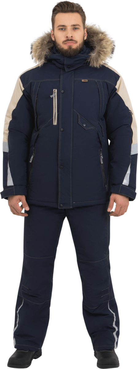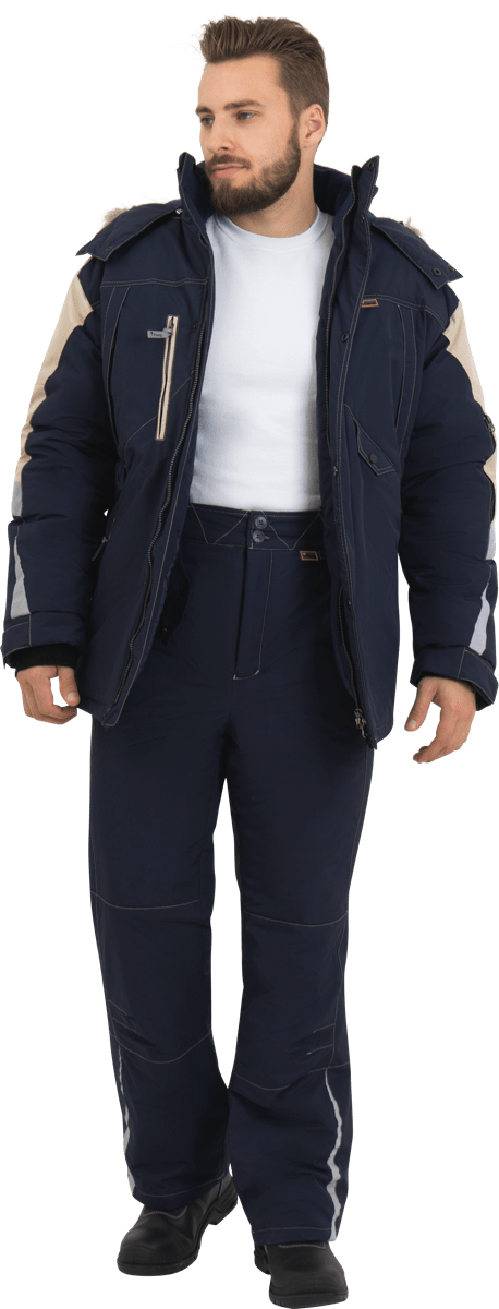 Купить Куртка мужская ХАЙ-ТЕК от пониженных температур воздуха и ветра, механических воздействий и ОПЗ, синий/бежевый вы можете в компании СнабТим, оформив заказ в интернет магазине, или