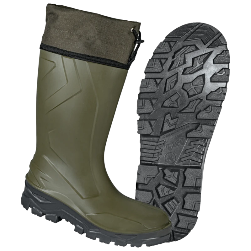 Сапоги «Патриот М», изготавливаются из полиуретана на подошве ПУ, изготовленной методом прямого литья, с настрочной манжетой из ткани «Оксфорд» на шнурке с фиксатором. Дополнительно оснащены композитным подноском (200 Дж) и антипрокольной кевларовой стелькой (1200 Н). Предназначены для работы и активного отдыха в сложных погодных условиях, включая грязь, снег и сырость. Они подходят для строительных работ, охоты, рыбалки, а также для других ситуаций, где требуется надежная защита от влаги и холода в тяжелых условиях труда.