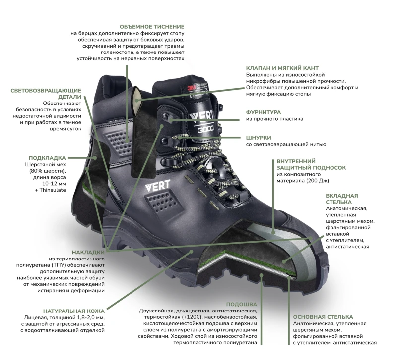 Покупайте Ботинки VERT (VERT 3015) с КП и КС Thinsulate® шерст.мех, кожаные ПУ/ТПУ по цене 6435 руб. оптом или в розницу в магазине спецодежды СнабТим. Большой выбор защитной одежды, СИЗ и других хозтоваров в Арске. Заказывайте онлайн или по телефону +7 (991) 190-59-22