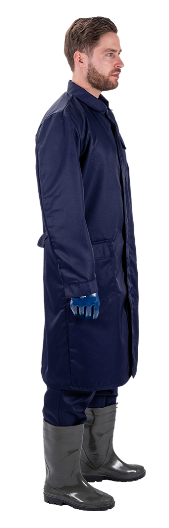 Купить Комплект мужской от растворов кислот и щелочей, механических воздействий, (халат, брюки), темно-синий вы можете в компании СнабТим, оформив заказ в интернет магазине, или