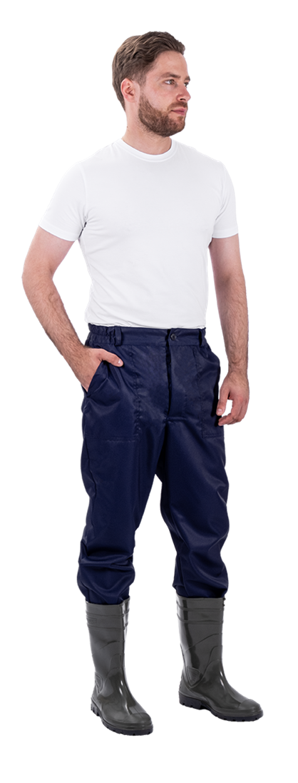 Комплект мужской от растворов кислот и щелочей, механических воздействий, (халат, брюки), темно-синий