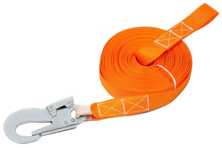 Строп спасательный ленточный с карабином используется для удлинения фала пояса предохранительного лямочного и, совместно с этим поясом, предназначен для страховки и экстренной эвакуации человека, работающего в траншеях, колодцах, ёмкостях и др. замкнутых пространствах.